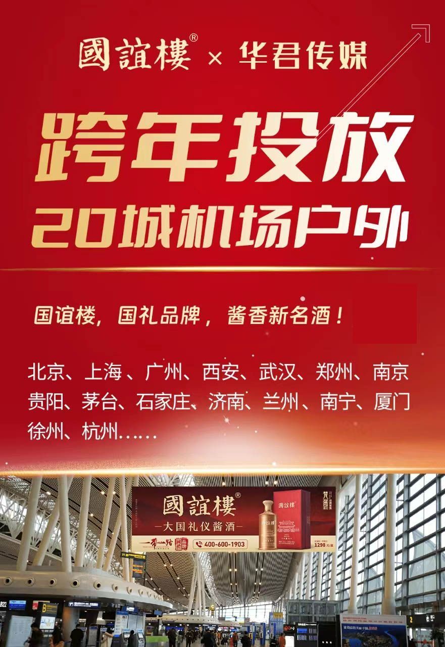 跨年之际,国谊楼联合华君传媒,实现全国20城机场,1300点位高频滚动投放,立足跨年档,预热春节档,预估收获亿级曝光量,助力品牌腾飞新高度。