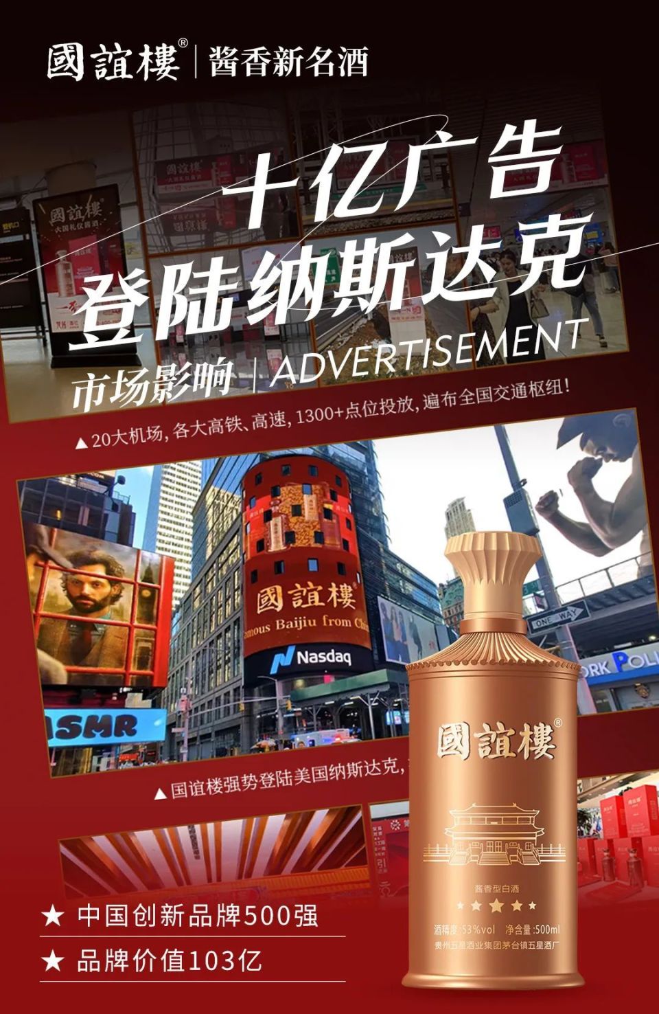同时,作为怀揣复兴情怀的大国品牌,国谊楼彰显着与国际接轨的自信姿态,以一抹“中国红”多次亮相美国纽约纳斯达克大屏。