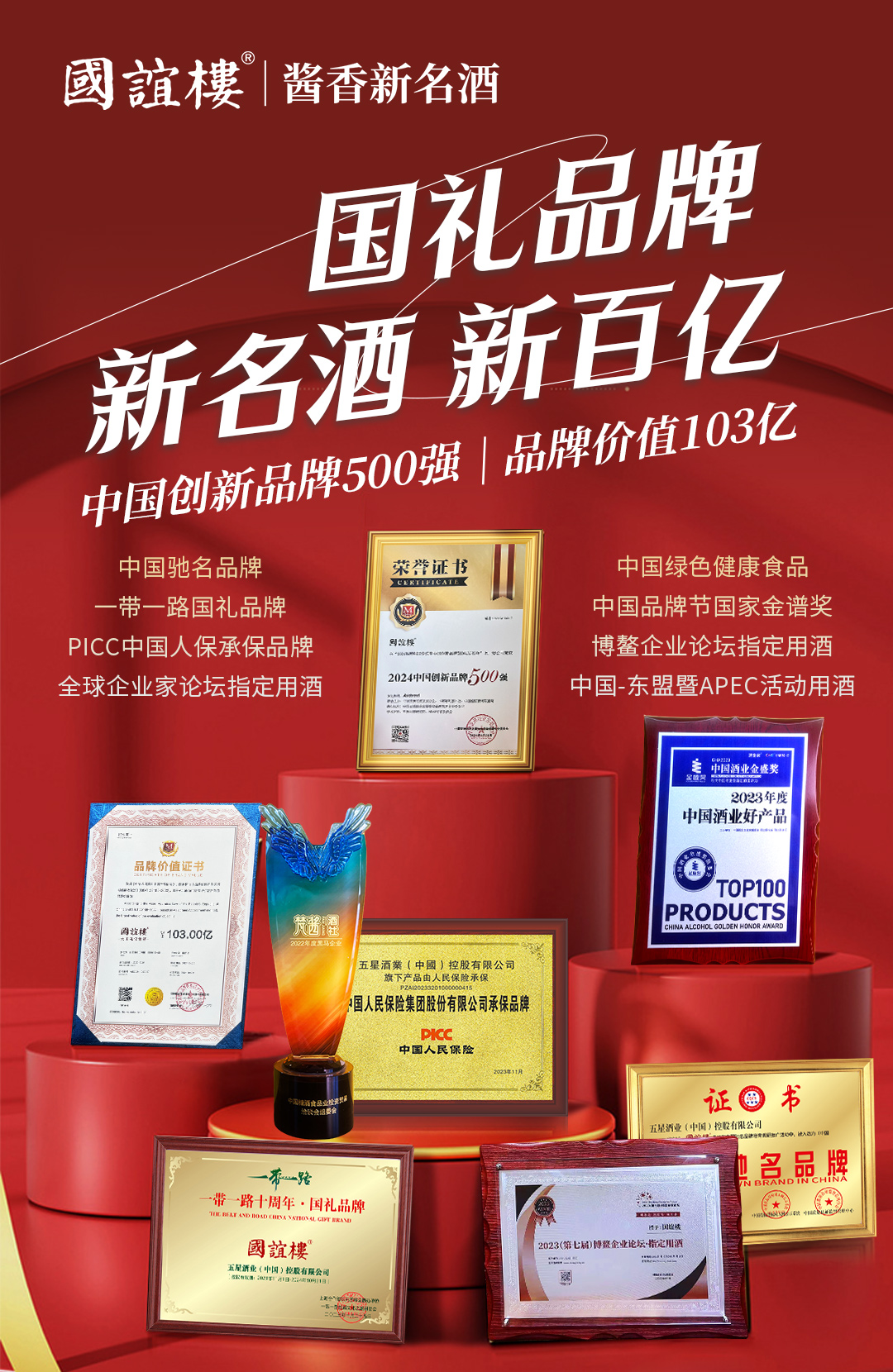 自品牌成立起,国谊楼斩获多个权威奖项,献礼世界,入选一带一路·国礼品牌,更凭借103亿的品牌价值,成为中国白酒行业最具价值的品牌之一,从“品质、品牌、产品”三个维度上,进一步夯实国谊楼的领衔地位。