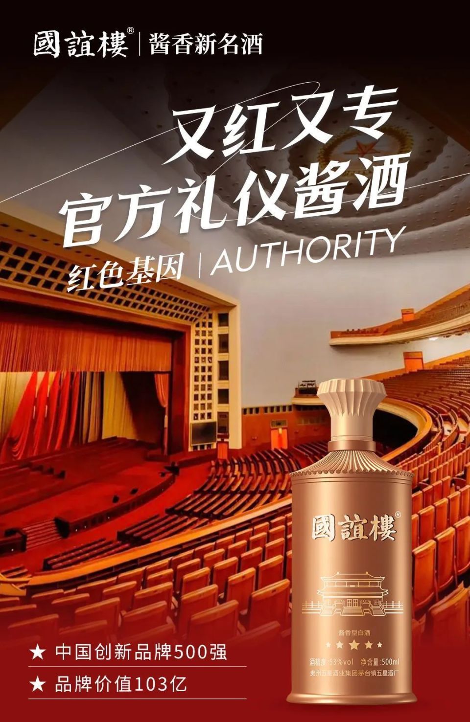 又红又专,国谊楼深厚官方礼仪场合青睐,荣获第七届博鳌企业论坛指定白酒、2024世界品牌大会论坛宴会用酒、赞助东盟暨APEC国际高尔夫联谊赛等官方活动。与时代同振,建立起大国酱香丰满的品牌形象。