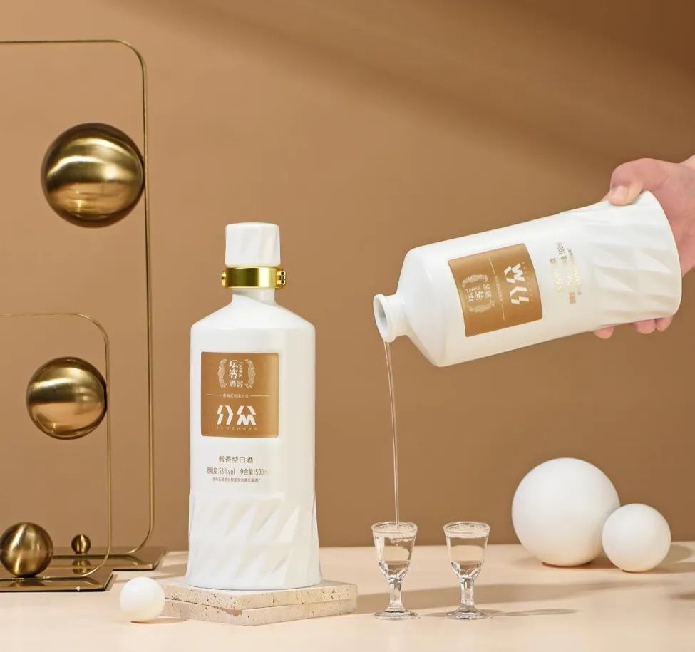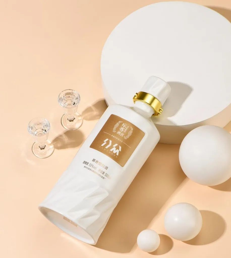 高端是一种身份象征,更是一种视觉语言,分众则从点滴细节打磨品牌的高端基因。受“几何美学”灵感启发,分众采用铂光白瓷瓶瓶身,现代感线条交相辉映,金色瓶颈点缀其中,在当下主流的酱酒瓶身设计中独具一格,彰显企业不凡气质与品味,真正诠释“简约即高级”。