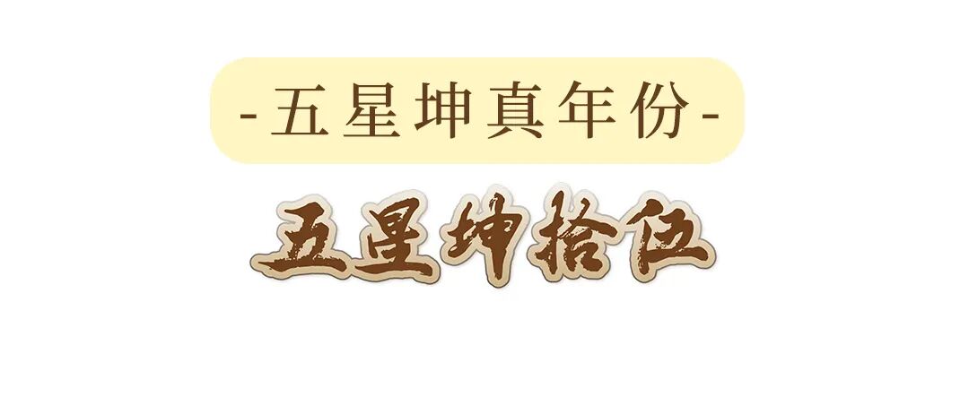 “坤”,意为承乾坤之力,顺应天时,“五星坤拾伍”便是顺应自然所得之物。同时,“坤”又有“坤沙”的含义,标牌字体直接点出15年的老酒年份,字形肆意洒脱,透露出品牌的自信力,也符合当下消费者的审美。