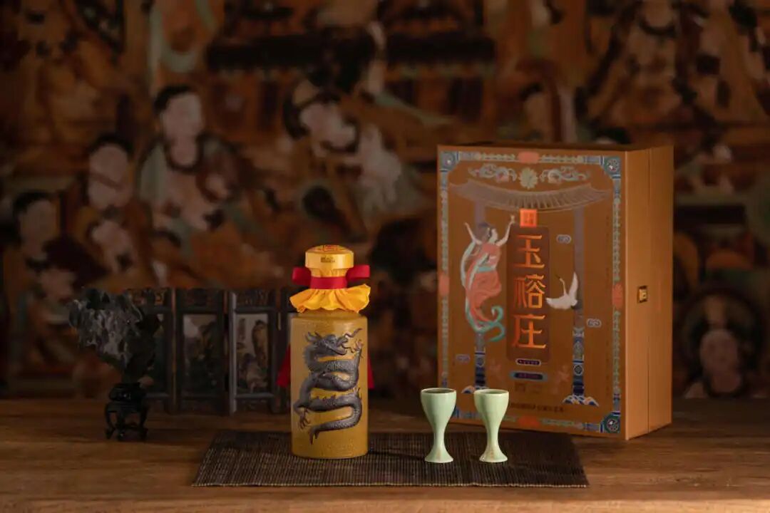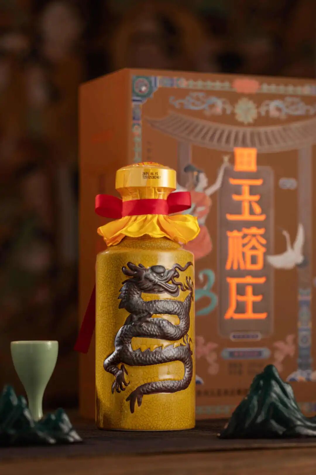 帝王将相以“龙”为镜,照见权力的虚实相生。文人墨客将“鹤”提炼为精神的超流体,在宣纸与酒香间构建精神宇宙。民间将“仙”解构为流动的福祉,完成对天命的诠释。玉榕庄凝结三大东方美学元素,以诠释酱酒图腾。当酒液注入醒酒器,光影穿透珐琅彩绘的飞天纹样,宴席瞬间升华为沉浸式的文化剧场。
