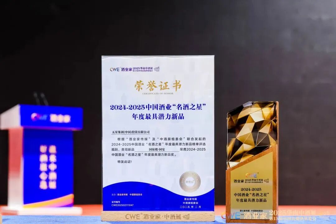 在激烈的酒业竞争浪潮中,国谊楼凭借对品牌、产品、渠道的全方位破圈,持续积蓄和释放全国化发展势能,实现“新名酒、新百亿”的战略目标。2025华南中酒展上,国谊楼从百款产品中强势突围,一举斩获2024-2025 中国酒业 “名酒之星”,以硬核实力坐实“酱香新名酒”地位,赢得市场与行业的双重认可。