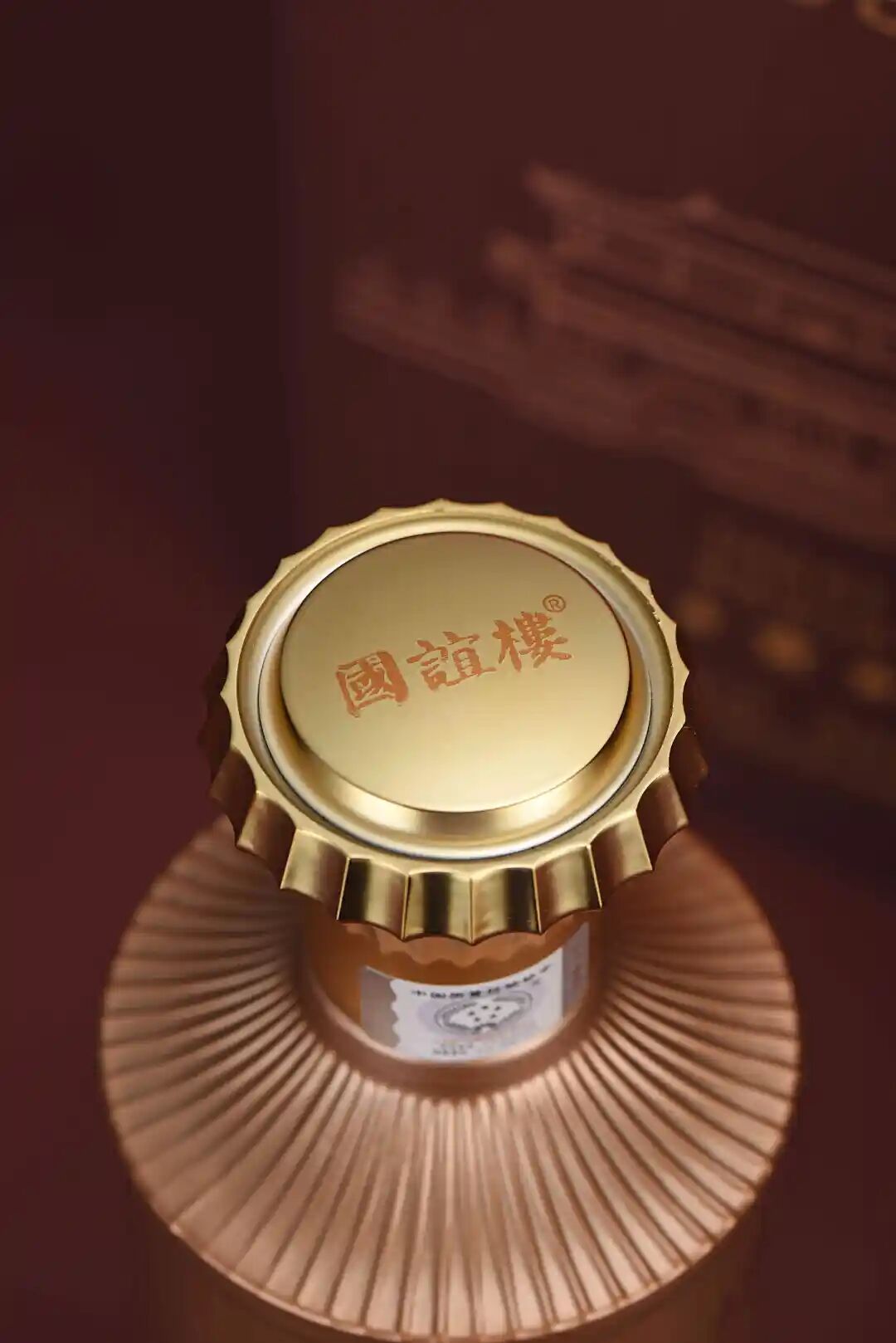 端午制曲,重阳下沙,瓶盖上的二十四道竖纹,则是向世界非遗"二十四节气"的致敬。瓶底融入“龙虎盘”之意,龙虎盘象征四平八稳,不仅彰显国酒风范,更寓意国谊楼以强大品质和无畏开拓精神,在国际舞台传递中国酱香魅力 。