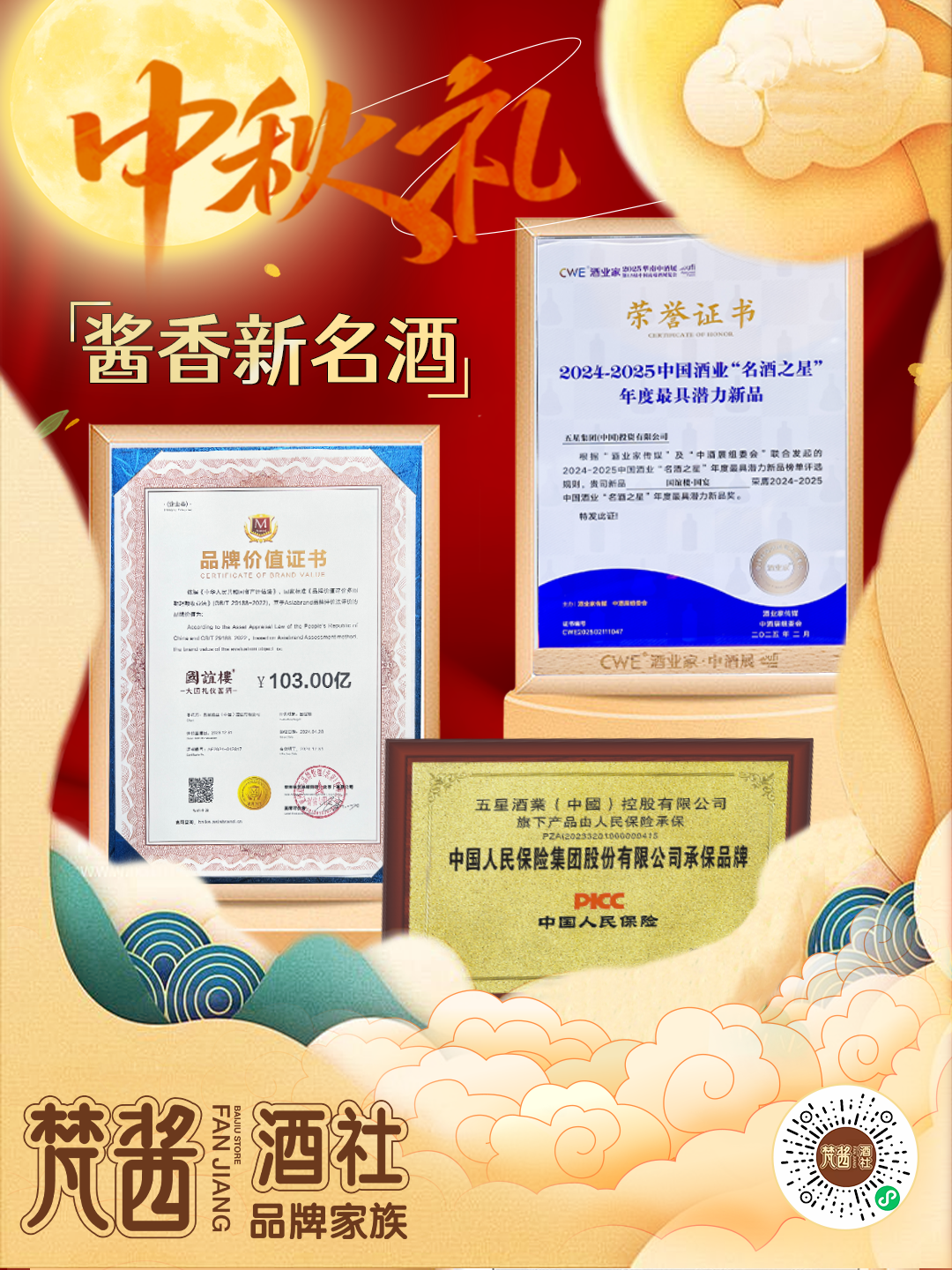 月圆中秋,礼遇非凡。以卓越产品力成就非凡品牌力,梵酱酒社旗下国谊楼酱酒与阿里巴巴、比亚迪等巨头同登“中国创新品牌500强”,品牌价值高达103亿,并荣获2024-2025中国酒业“名酒之星”,正是这份对品质的极致追求,赢得了市场的崇高赞誉。