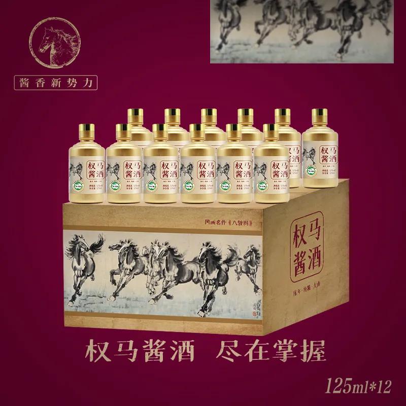 权马产自茅台镇7.5平方公里酱酒核心产区,传承12987古法技艺,秉持只做纯粮大曲酱香酒定位,将名画《八骏图》融入500ML鎏金瓶身中,定位酱香新势力,寓意拼搏不息的权马精神。