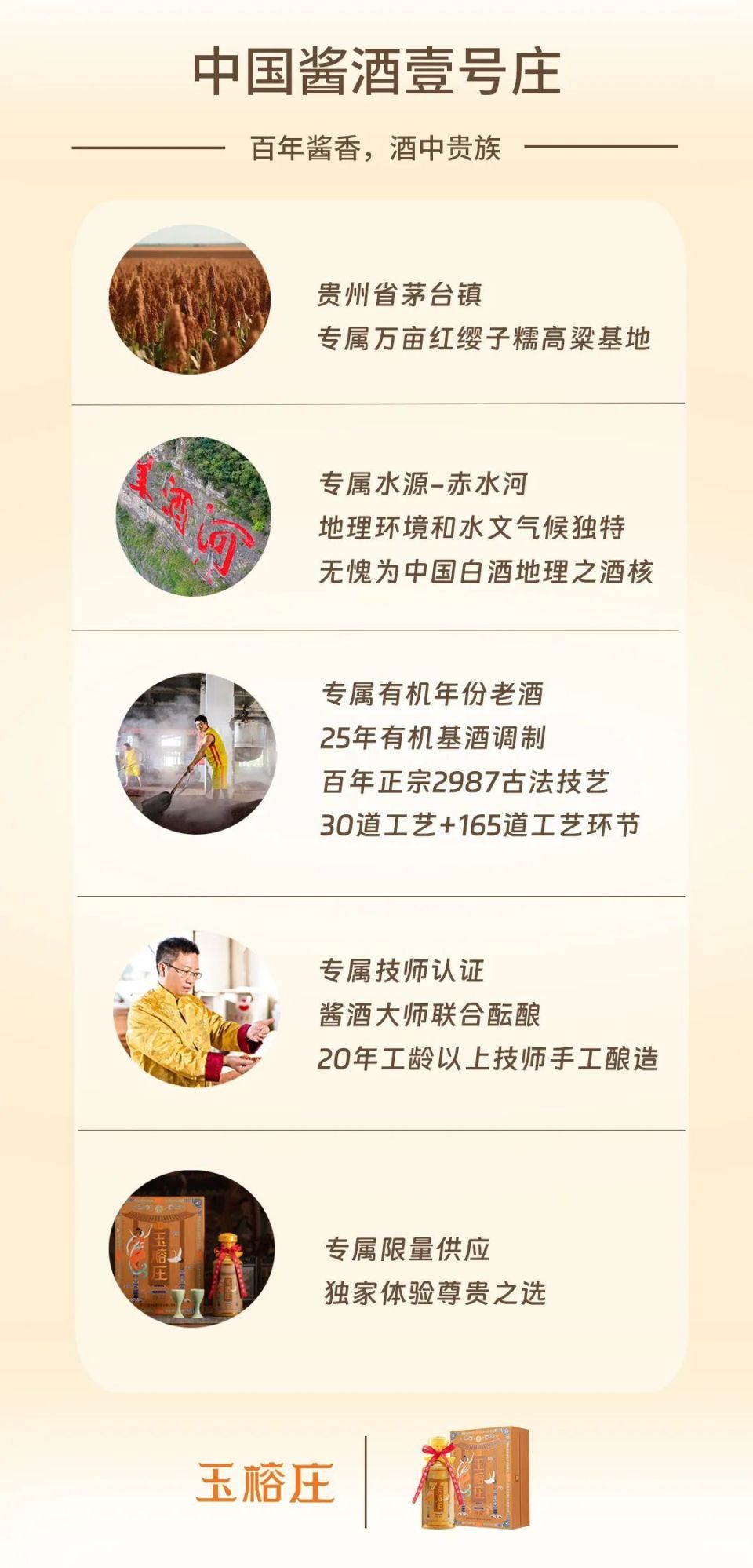 吸天地之灵气,聚日月之精华,中国酱酒壹号庄取之自然,运用自然,清洌甘甜的赤河水,颗粒饱满的红缨子糯高粱,依山傍水的酿酒槽房,追求“完美和极致”的酿酒师傅...好山,好水,好匠人,中国酱酒壹号庄守住时间,沉淀岁月,三百年如一日的坚持,将对品质的高端标准,刻进岁月的每一分褶皱里,一心酿出纯粹的好酒。