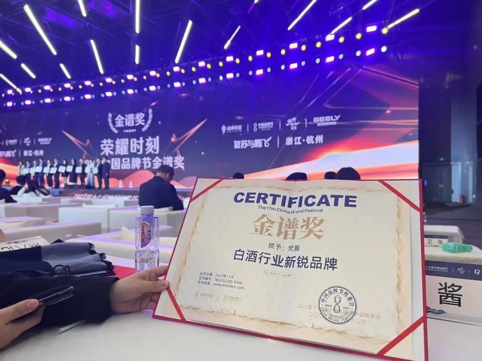 发展硕果累累,荣誉再谱新篇!为行业打造中国白酒品牌建设范本、注入创新动能的梵酱酒社不仅是本届中国品牌节的耀眼焦点,在11月18日的荣耀盛典上,梵酱酒社品牌家族更斩获“2023中国品牌节金谱奖·白酒行业新锐品牌 ”大奖。
